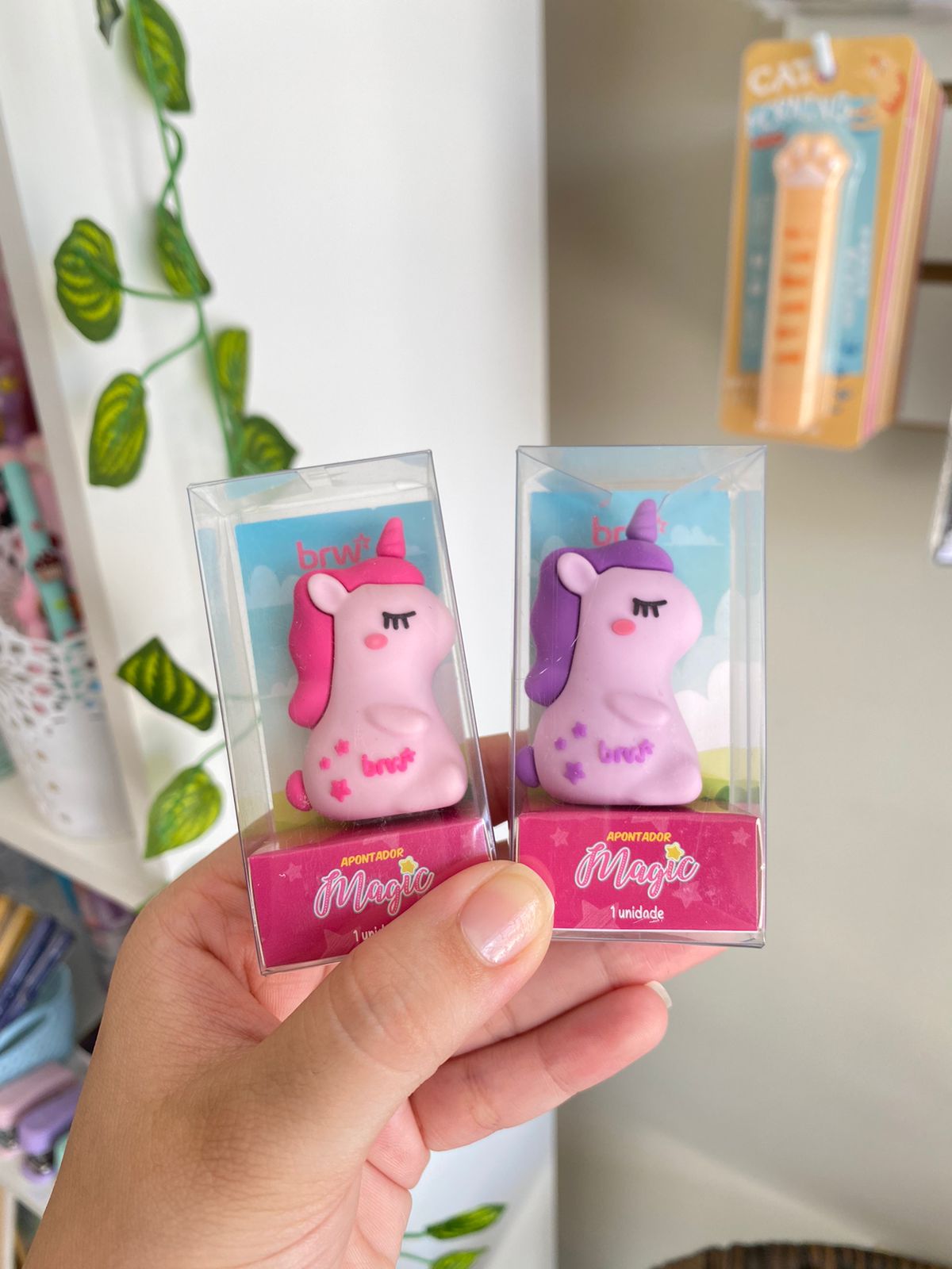 Apontador super fofinho em formato de Unicórnio. Esse apontador tem formato emborrachado tão perfeito que serve até como decoração de mesa de estudos. Os detalhes são encantadores. Aponta lápis comum.