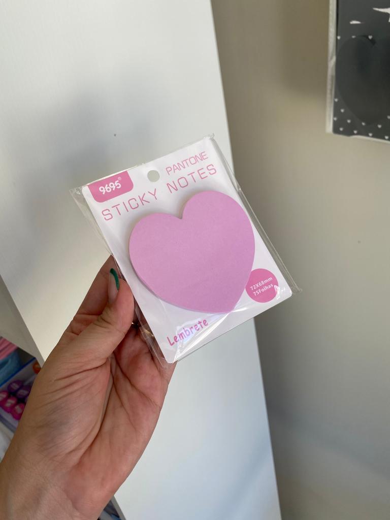 Bloco autoadesivo colorido em formato de coração. Contém 75 folhas autocolantes