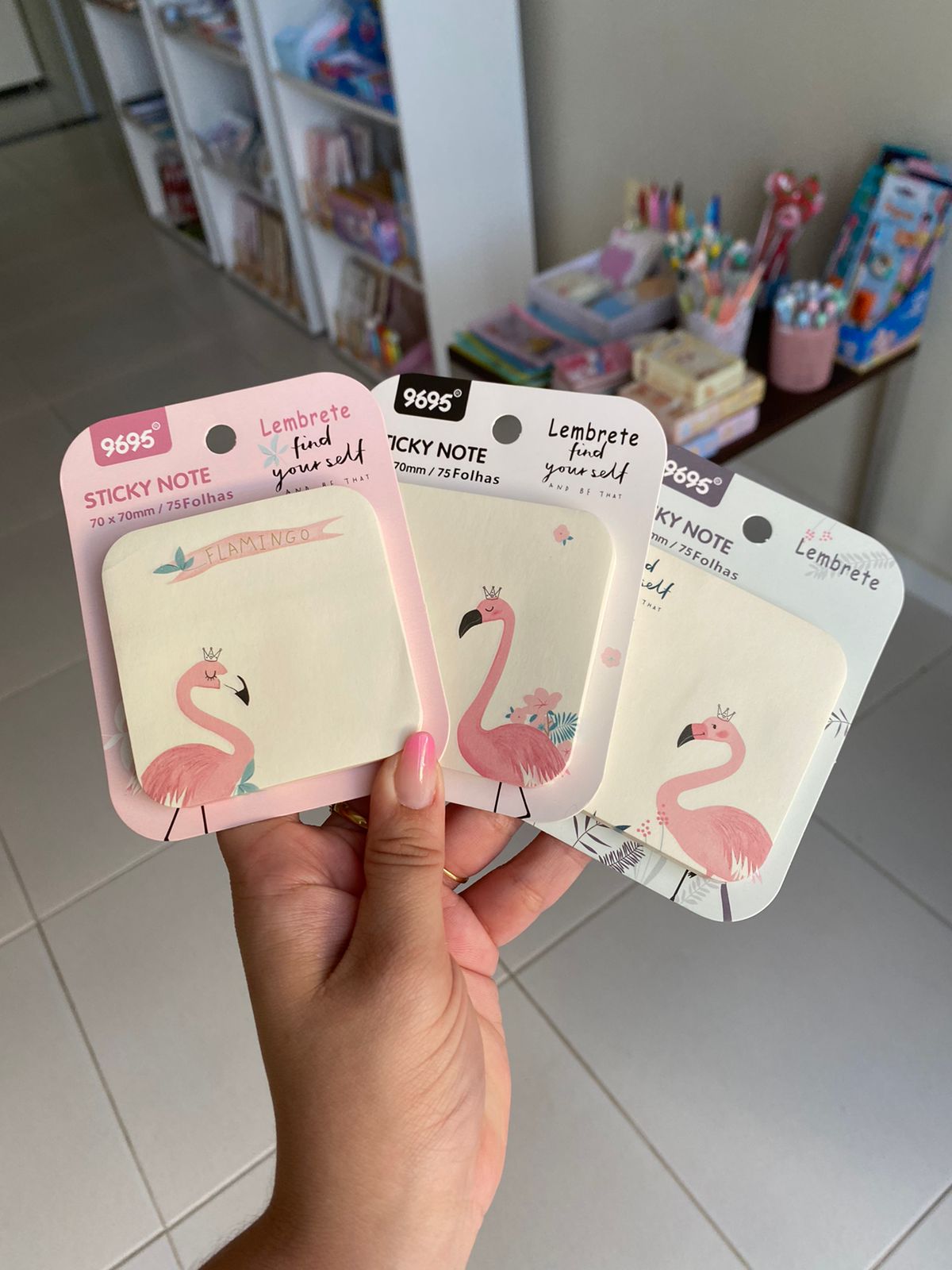 Lindo bloco autoadeivo com 3 variações de estampa no tema Flamingo :)