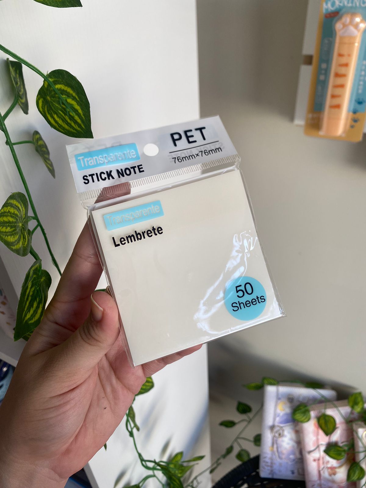 Bloco autoadesivo trasparente que te permite fazer anotações de forma mais clara nos seus livros e cadernos sem rasurar a folha, fáceis de remover e parece que tem nem nada ali, só suas anotações :)