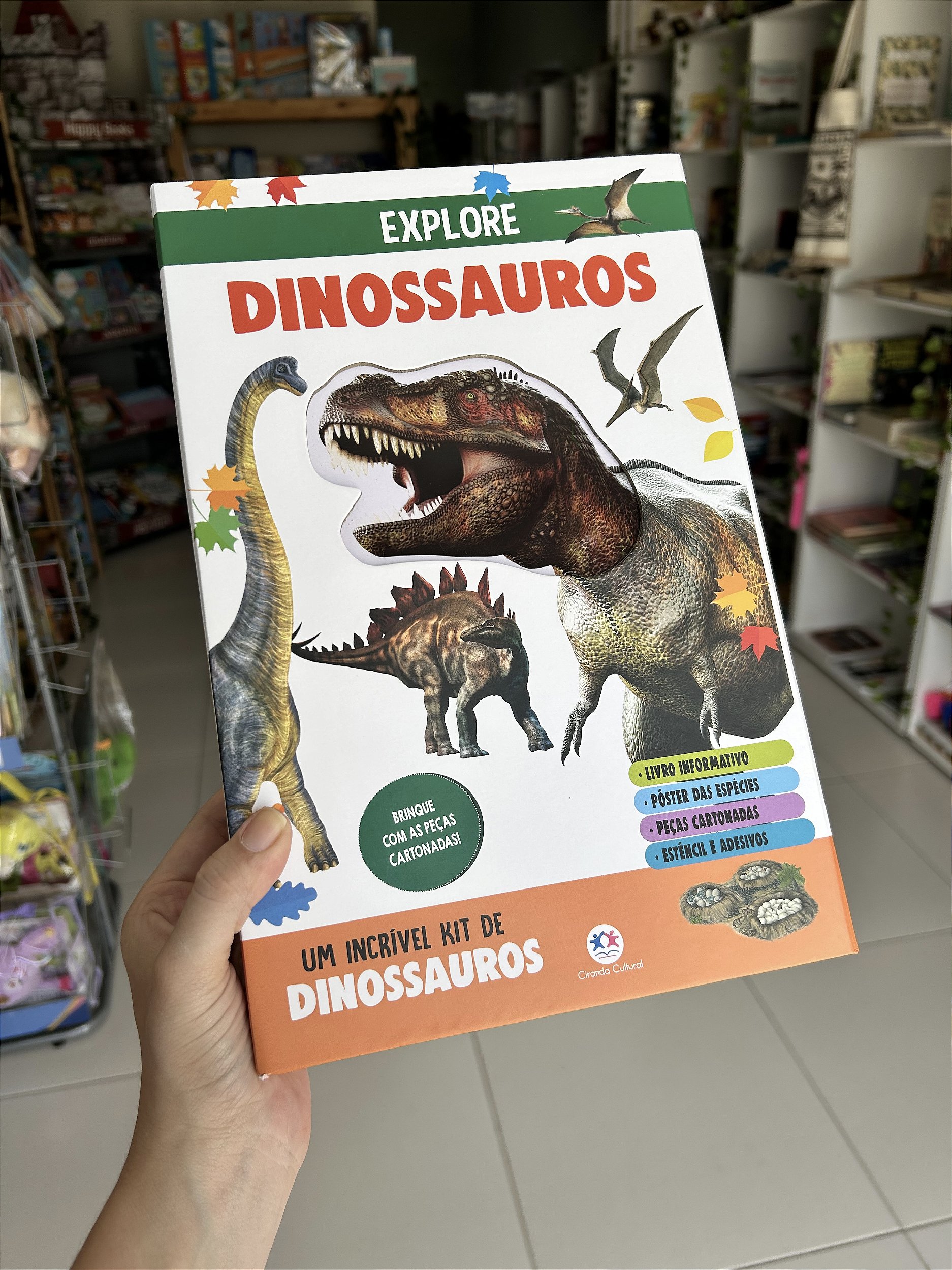 Venha explorar a era dos dinossauros com este fantástico kit, que vem com livro, pôster, estêncil e peças cartonadas. Você vai aprender sobre características, hábitos, curiosidades e muito mais desses seres pré-históricos!