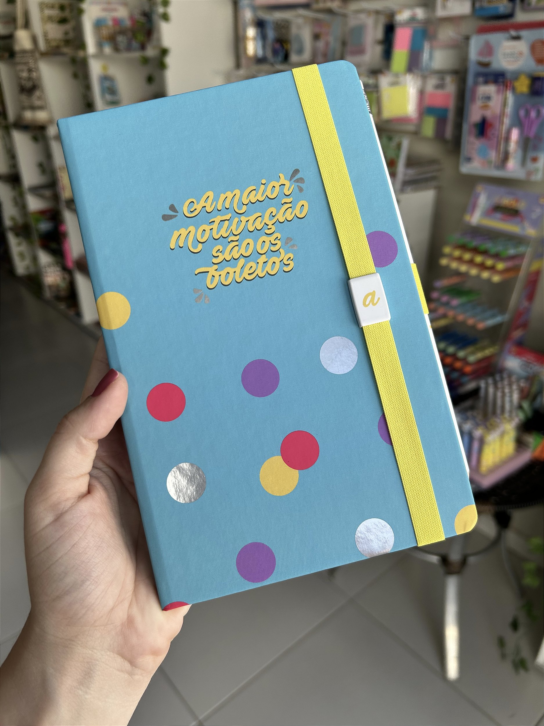 Conteúdo: 84 folhas pautadas, impressas em 1x1 cor em papel Color Plus Marfim, 80 g/m², Fechamento com elástico. Fita de cetim para marcar as páginas. 1 lápis redondos HB com borracha