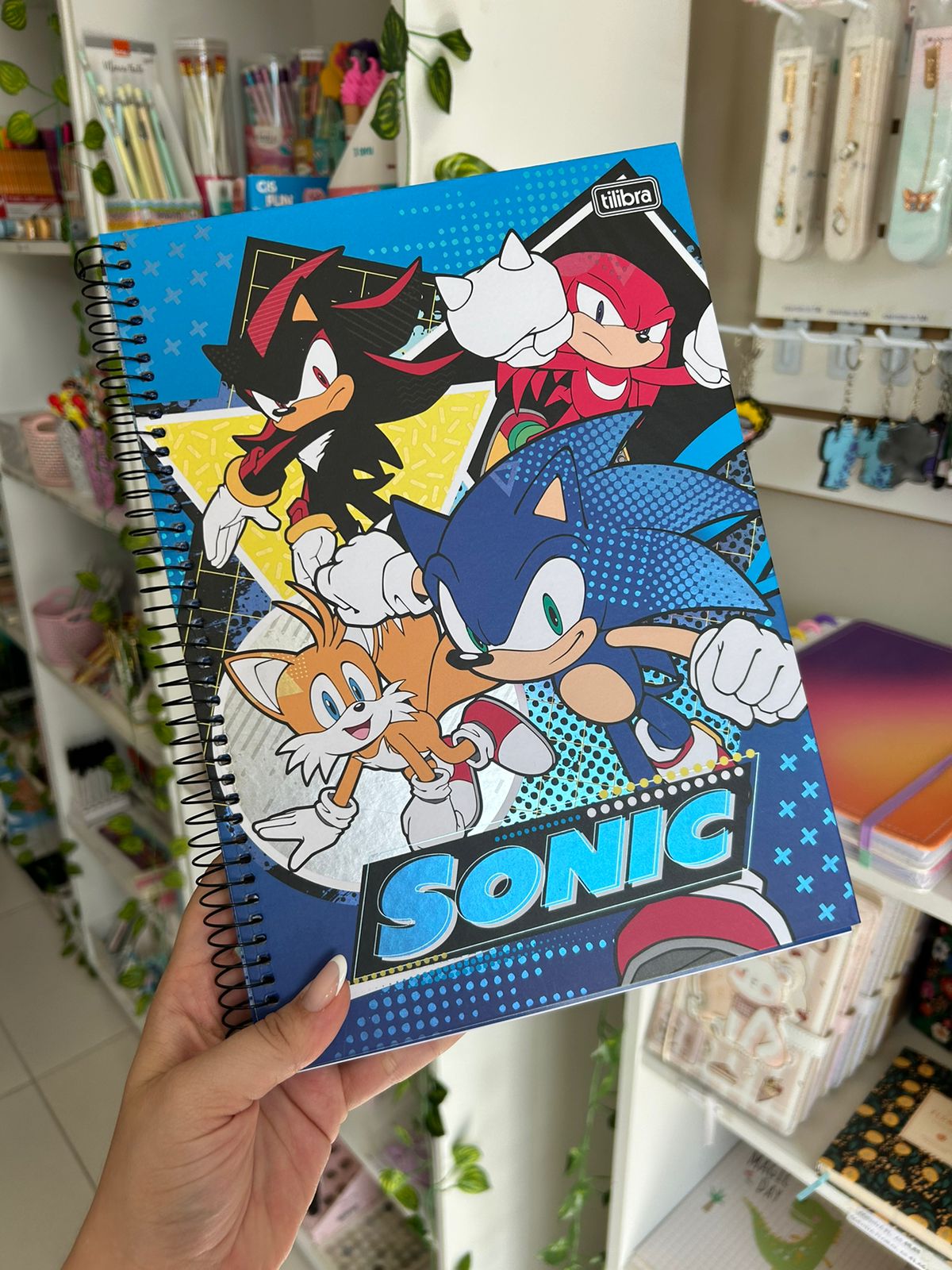 Caderno tamanho grande capa dura do Sonic com 80 folhas. Acompanha cartela de adesivos dos personagens.