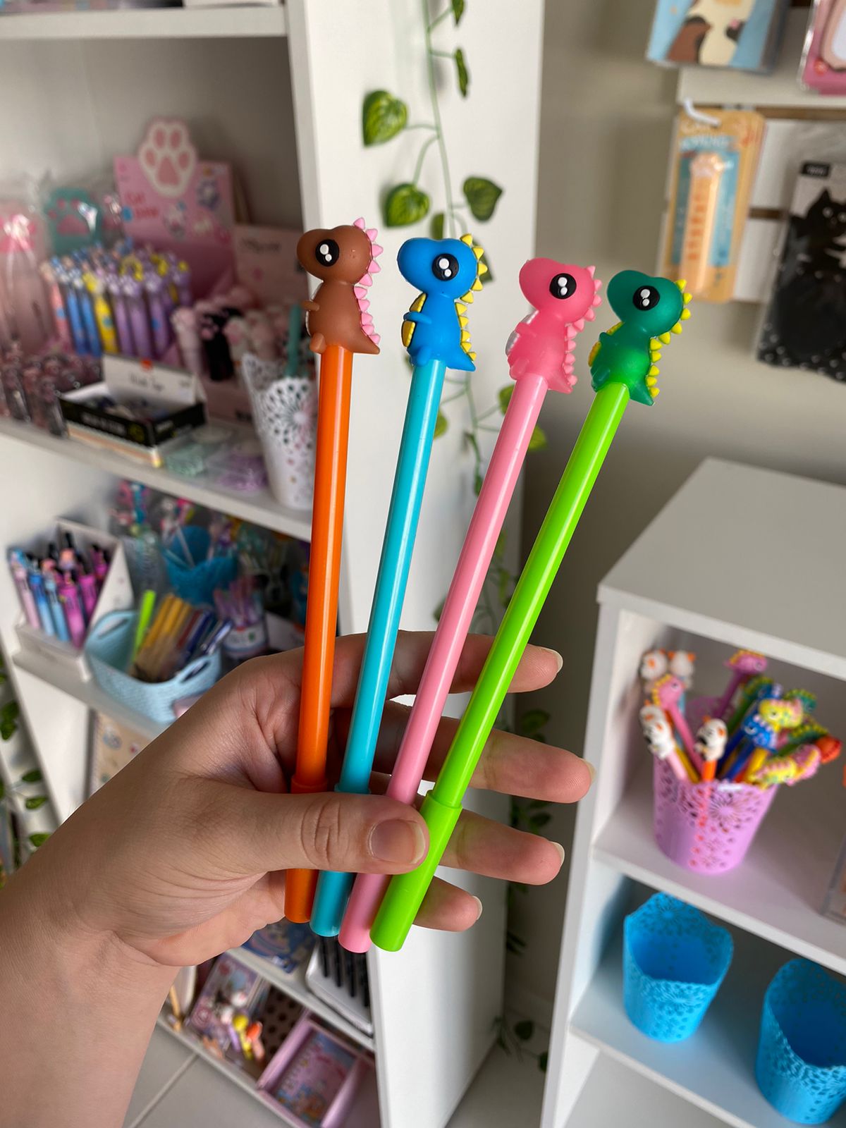 Caneta super fofa com T-Rex em 4 opções de cores para os apaixonados por Dinos!