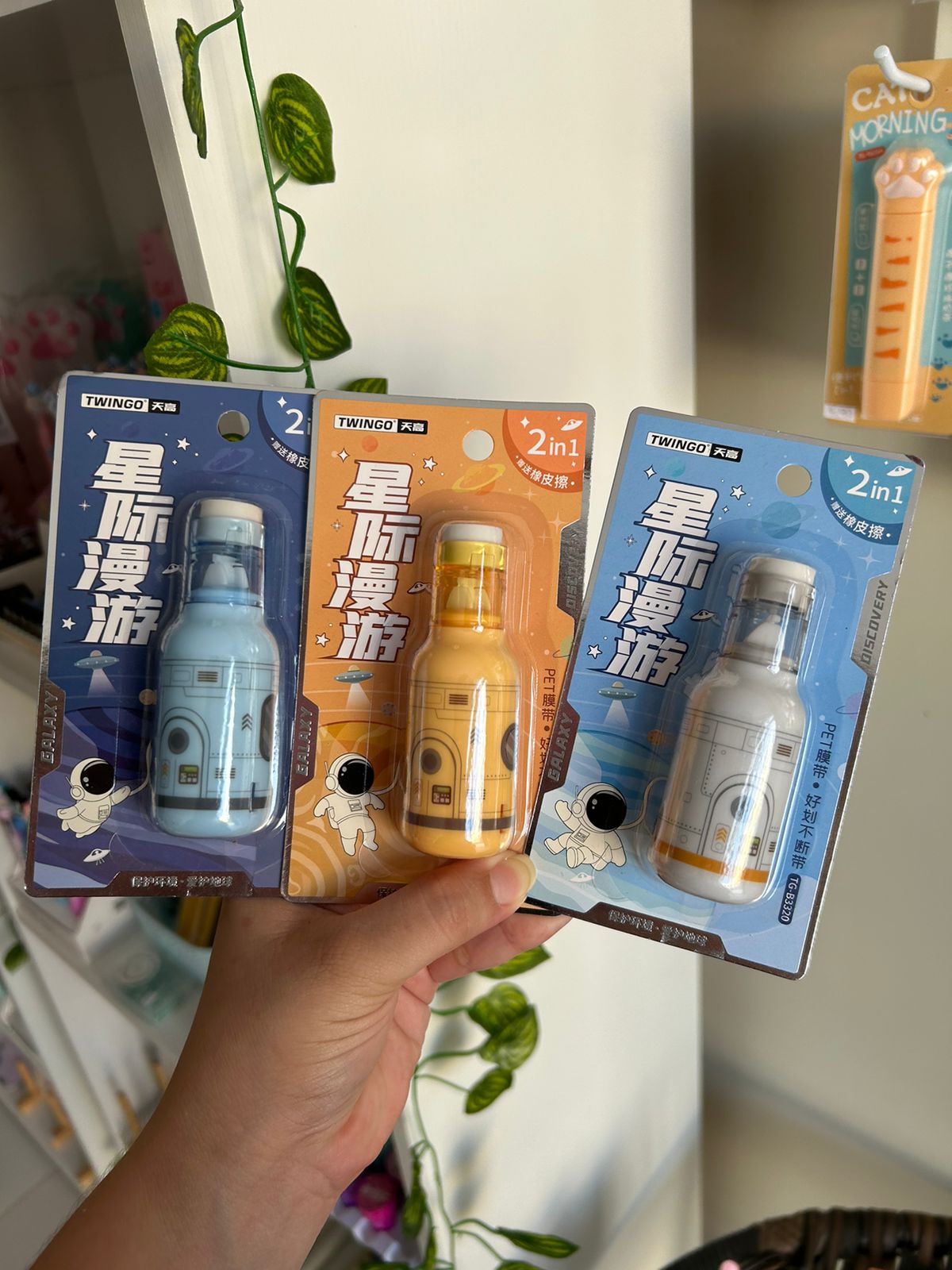 Para você apaixonado pelo espaço ou até mesmo por foguetes espaciais e astronautas, chegou corretivo em fita + borracha no tema de foguete espacial para abrilhantar seu estudo,trabalho ou até mesmo decorar sua mesa.