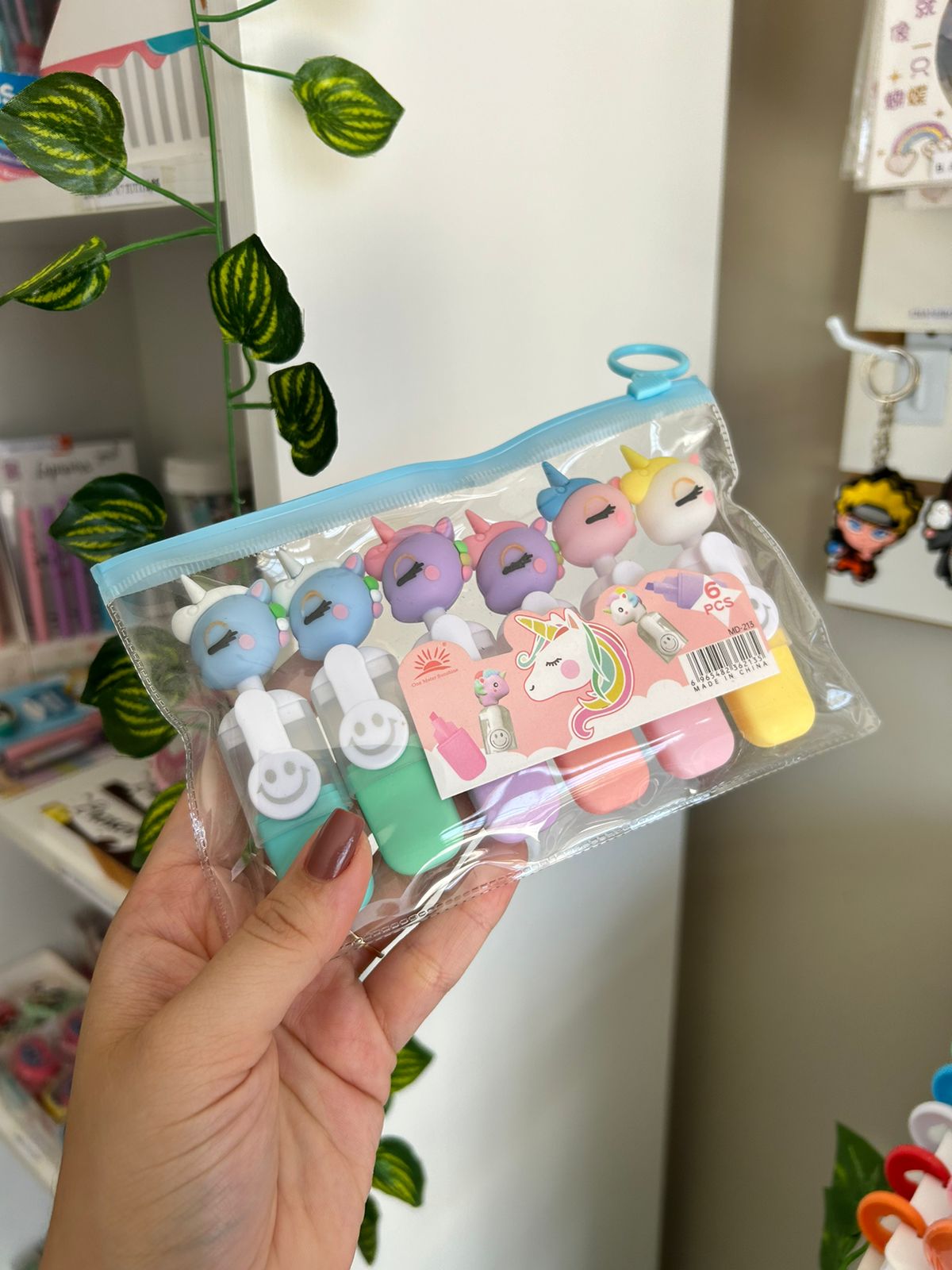 Kit com 6 mini marca textos fofinhos com formato de Unicórnio divertidos para animar seus estudos ou trabalho, cores fortes que se destacam bem. Ótima opção para marcar palavras importantes que não podem ser esquecidas e para presentear quem você ama.
