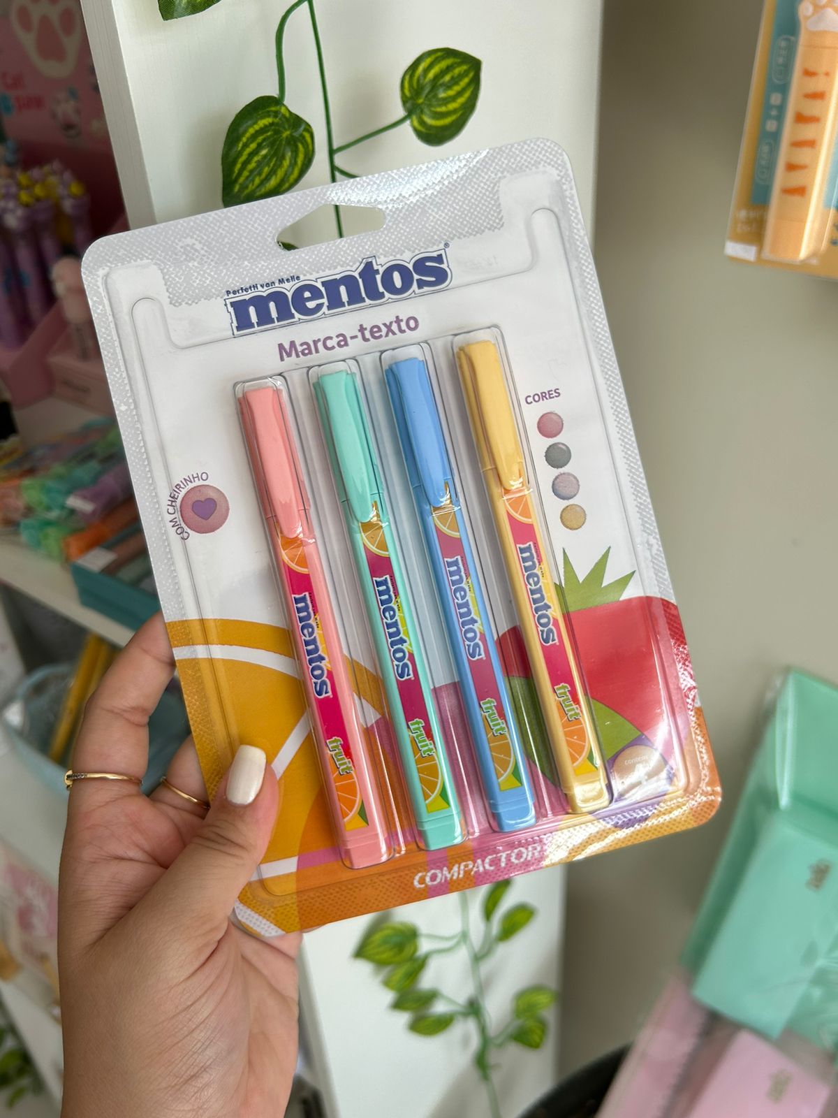 Falando em traços, o Kit com 4 Marca-Textos Perfumados 'Destaq' Mentos veio para iluminar seus dias com cores intensas e um aroma delicioso. Com uma ponta chanfrada que desliza suavemente sobre o papel, ele destaca informações importantes com estilo. O design anatômico em formato “D” é inovador e ergonômico, proporcionando uma experiência única de uso. E com o toque especial de Mentos, suas anotações ganharão um charme extra.