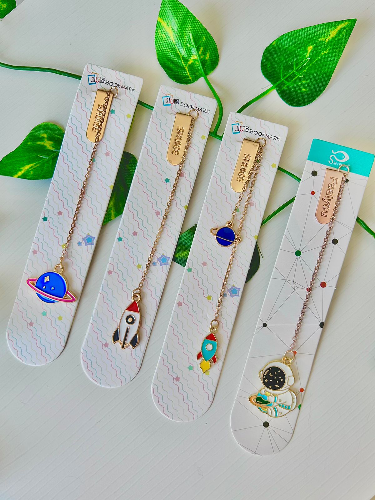 Explore as páginas dos seus livros com um toque especial de universo! Nosso marcador de página metálico com corrente e pingente é perfeito para os amantes do espaço e da leitura. Este acessório é delicado, resistente e traz o charme das galáxias em quatro opções exclusivas de pingente: Foguete e Planeta, Foguete, Planeta, ou Astronauta.