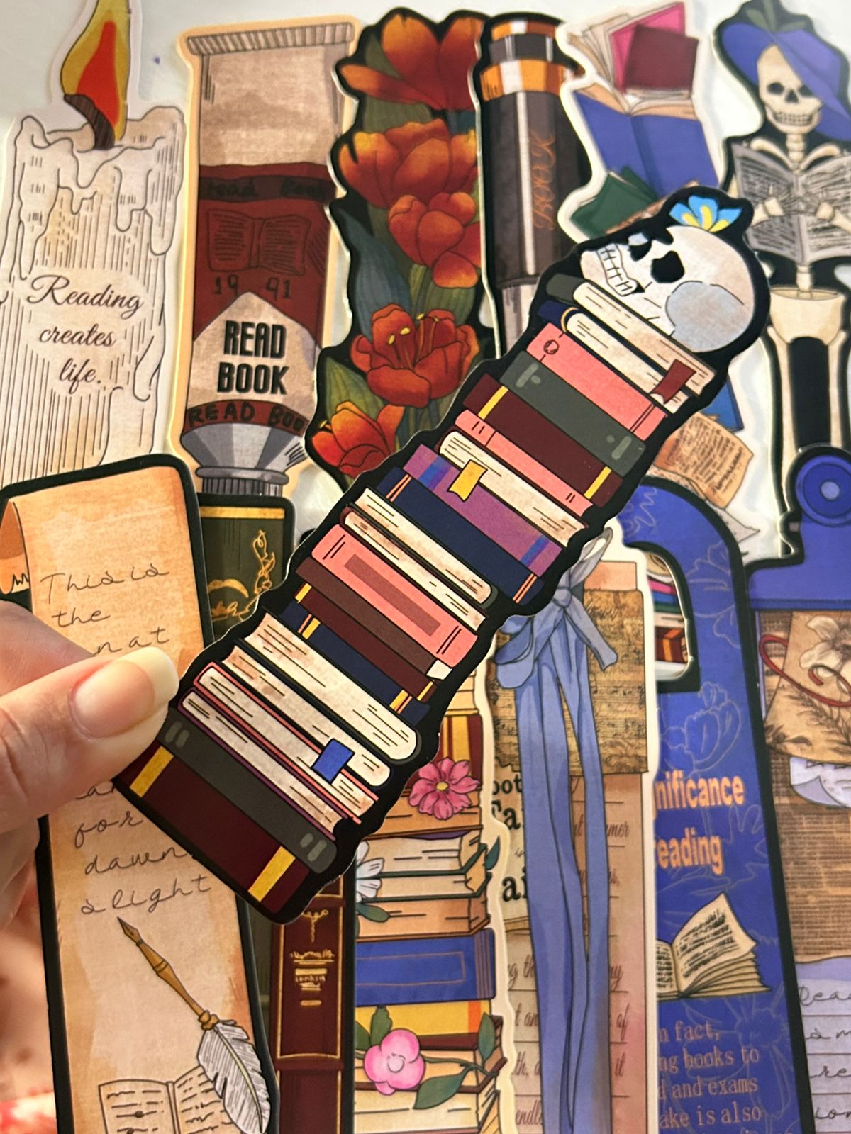 De símbolos curiosos a ilustrações intrigantes, cada marca página conta uma pequena história — qual delas vai te acompanhar na próxima leitura? 🕯️✨