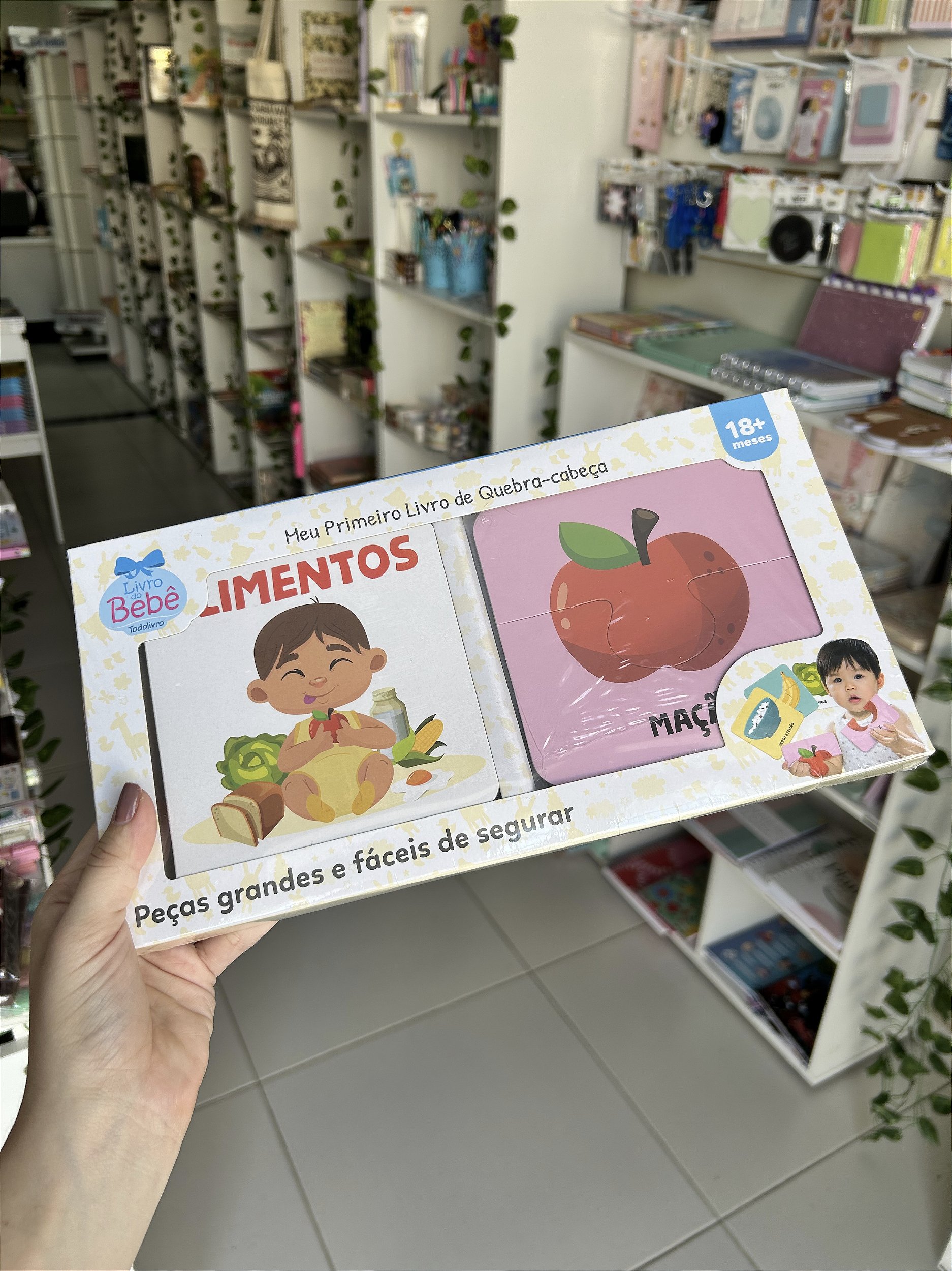 Contém: Livro cartonado + Diversos quebra-cabeças de 2 peças.