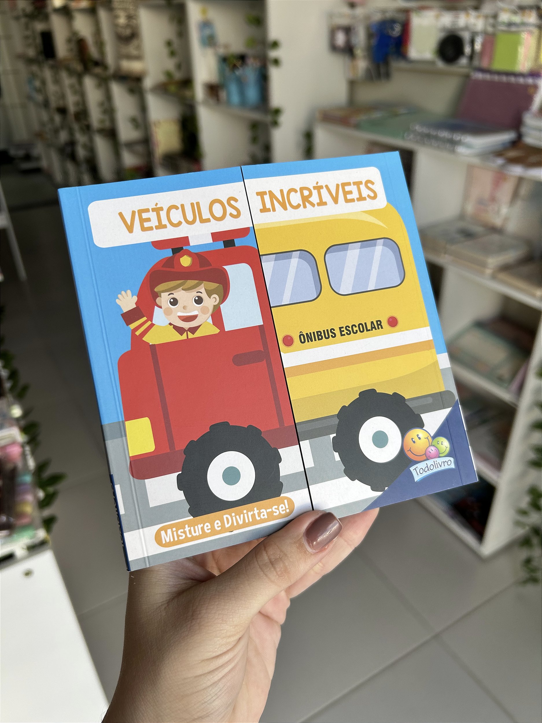 Aqui serão horas de diversão com este livro de misturar e combinar os veículos!