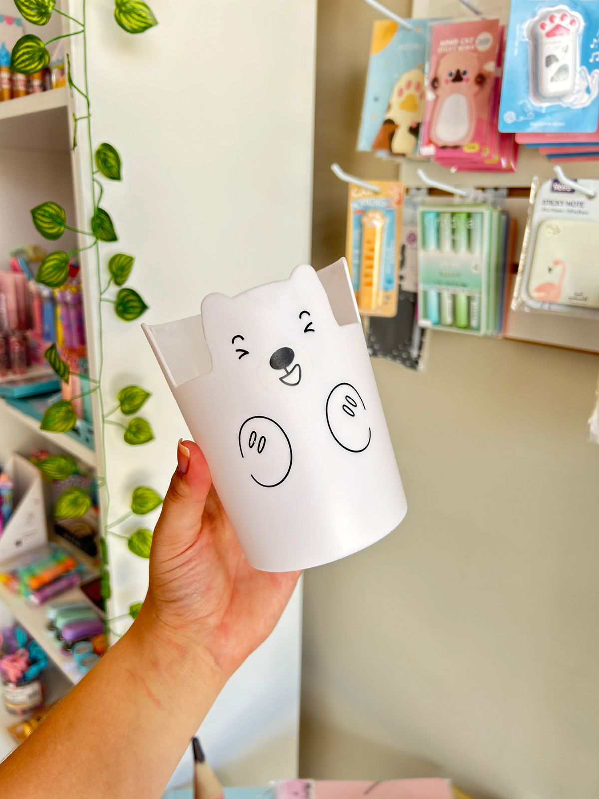 Copinho Multiuso que serve como porta canetas e porta celular, perfeito pra otimizar sua mesa de estudos!