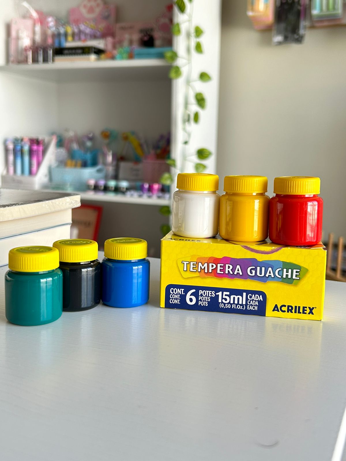 Tinta Guache Acrilex 15 ML Pote Com 6 Cores Variadas